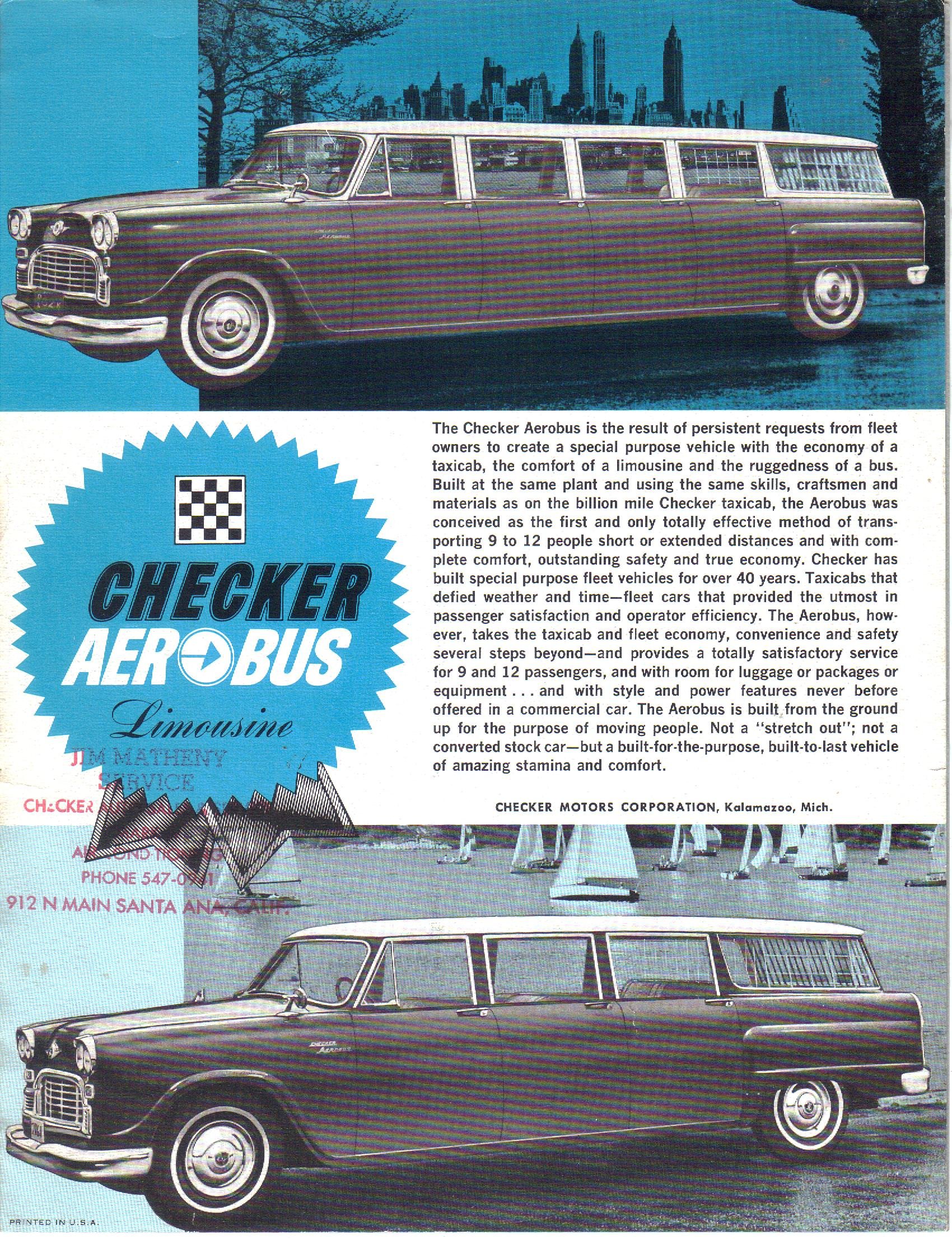 dal 1962 al 1977 fu realizzata una versione speciale della Marathon, denominata Aerobus, prodotta in due versioni: berlina sedan con 6/8 porte e una station wagon da 7/9 porte. Era in sostanza la versione (molto) allungata del modello di serie; considerate che la versione più grande sfiorava i 7 metri! Molte delle Aerobus prodotte vennero vendute ad aeroporti, che le usavano come bus navetta per lo spostamento dei passeggeri da un volo all’altro. Per quanto riguarda il suo utilizzo come auto taxi, l’ultima Checker Marathon rimase in servizio fino al lontano 1999.