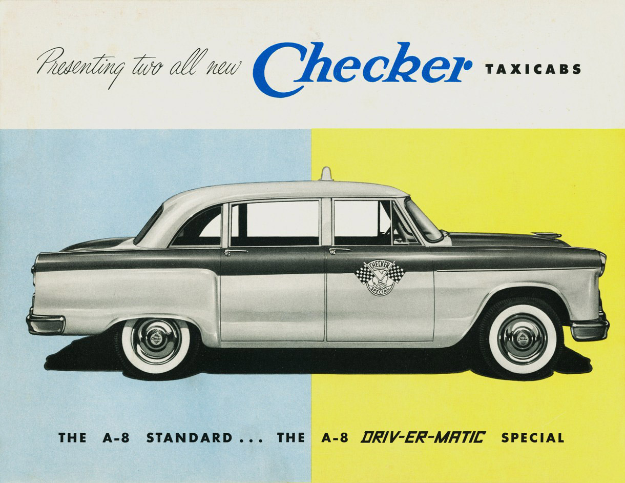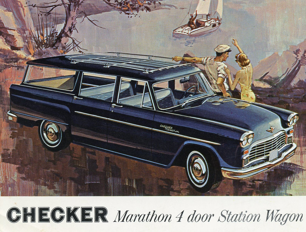 La macchina in questione è la Checker Marathon prodotta dalla Checker Motors Corporation di Kalamazoo, Michigan, dal 1961 al 1982. La Marathon fu introdotta nel settembre 1961 come sostituta del modello Superba, prodotto anche in versione station wagon, e rimase in produzione per oltre un ventennio, prodotta prevalentemente in versione taxi. La macchina nel corso del suo lungo ciclo di vita non ricevette molti aggiornamenti, ma vale la pena citare i più importanti, che sono i seguenti: