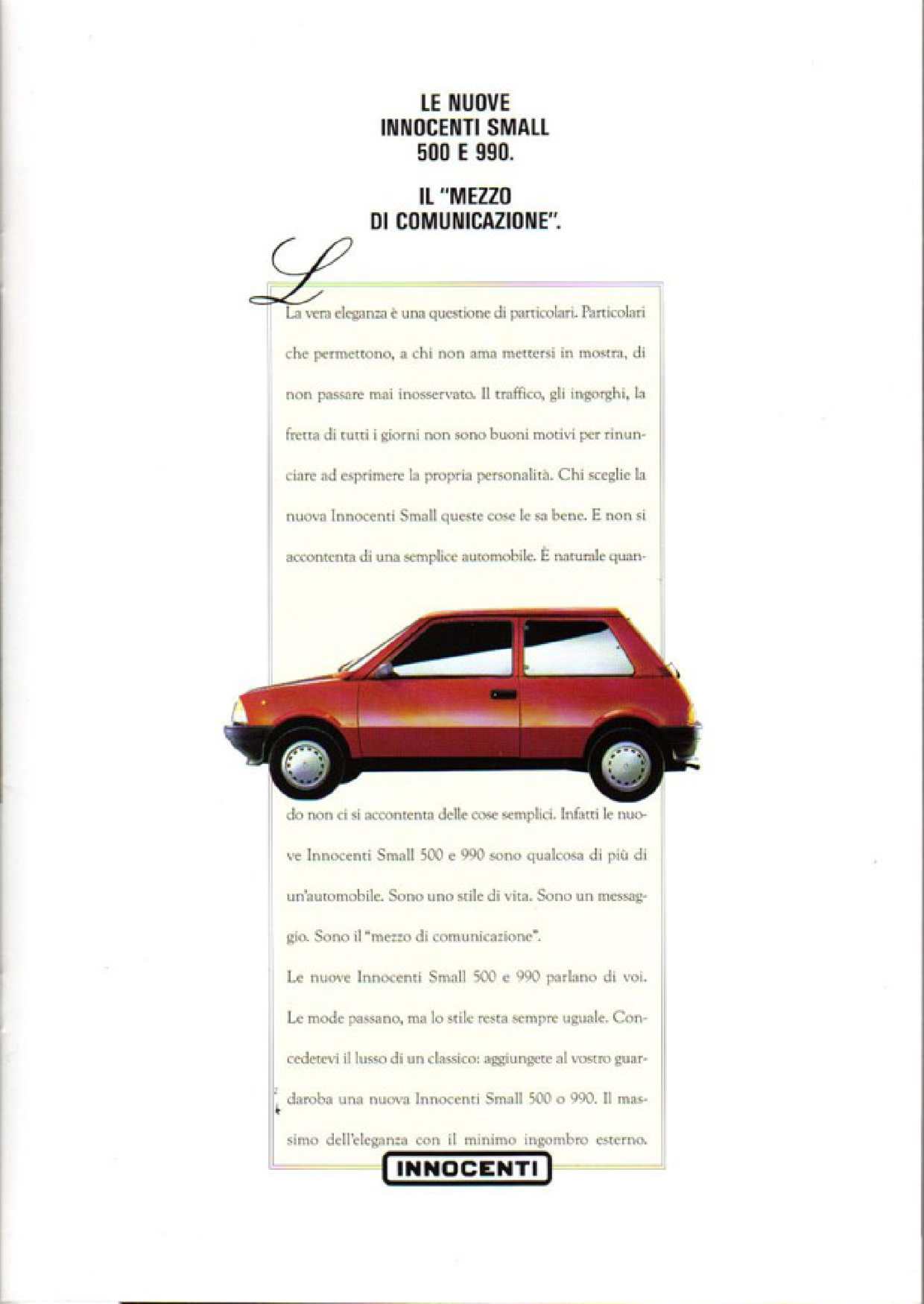 Attualmente la Mini Bertone risulta essere ambita da una nicchia di appassionati (clicca QUI per maggiori informazioni) e, l’esiguo numero di esemplari prodotti nei suoi 19 anni di produzione (circa 300.000 esemplari), la rende assai rara, dato che ne sono rimaste ormai poche in circolazione. Tornando al marchio Innocenti, quest’ultimo rimase attivo fino al 1997, proponendo come gamma modelli Fiat rimarchiati, come la Mille (Fiat Uno CS ) e la Elba (Fiat Duna Weekend). Da segnalare la breve presenza in listino, dal 1991 al 1993, della Koral, vettura basata sulla Yugo, auto serba prodotta da Zastava. Nel corso degli anni si è parlato anche di una rinascita del brand come marchio low cost di Fiat, sulla scia di quanto fatto da Renault con Dacia, ma non si è mai arrivati a niente di concreto.