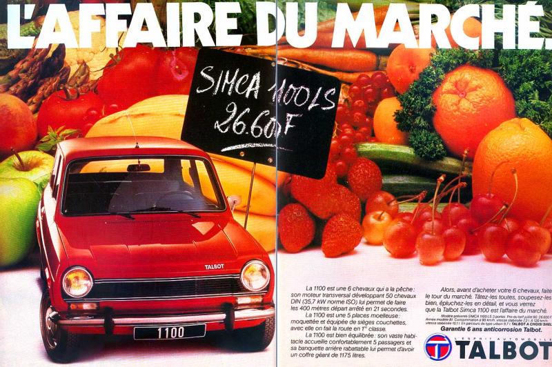 Il gigante Chrysler entrò presto in crisi, e nonostante il lancio di modelli interessanti come la 1307/1308 e la Horizon, entrambe Auto dell’Anno rispettivamente nel 1976 e nel 1979, decise di vendere al gruppo PSA la divisione Europea e, questo fu il canto del cigno per il marchio Simca, già appannato prima da Chrysler e definitivamente surclassato dal riesumato marchio Talbot, marchio che riportava alla memoria auto di lusso e dal design unico e, che invece si trovò ad essere riposizionato come marchio entry level del gruppo Peugeot – Citroën.