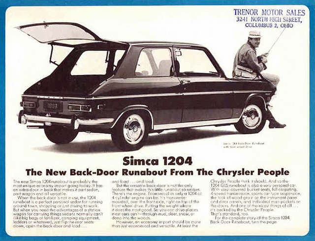 Andando con ordine, insieme alla 1000, la 1100 fu uno dei capisaldi della produzione ed attraversò le fasi dell’ acquisizione della Simca da parte di Chrysler, che iniziarono già nel 1958 e, si concretizzarono qualche anno dopo. Nacque quindi la Chrysler Europe e, poco dopo la formazione del nuovo gruppo, la 1100 cominciò, senza successo, ad essere importata anche in America sotto il nome 1204; da segnalare che quest’ultima versione adottava il climatizzatore di serie, accessorio raro per un’ auto compatta dell’epoca.