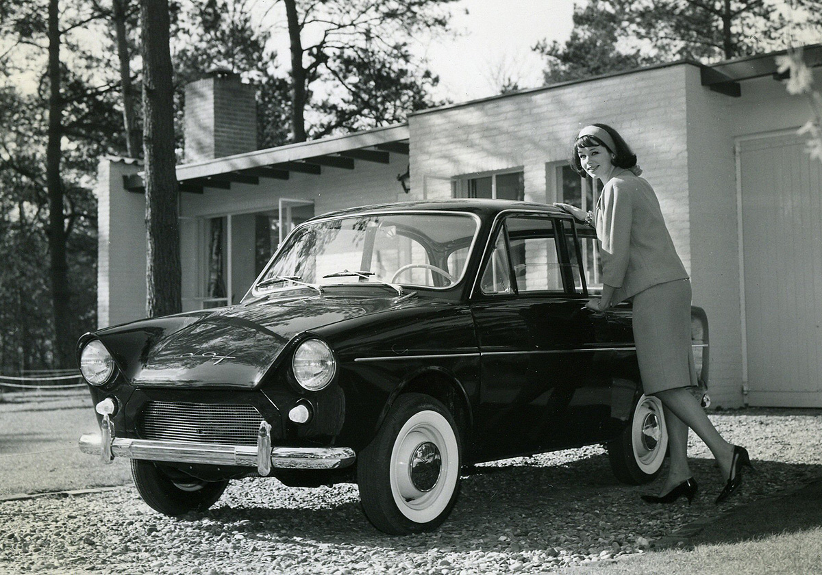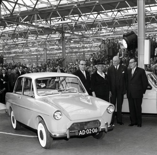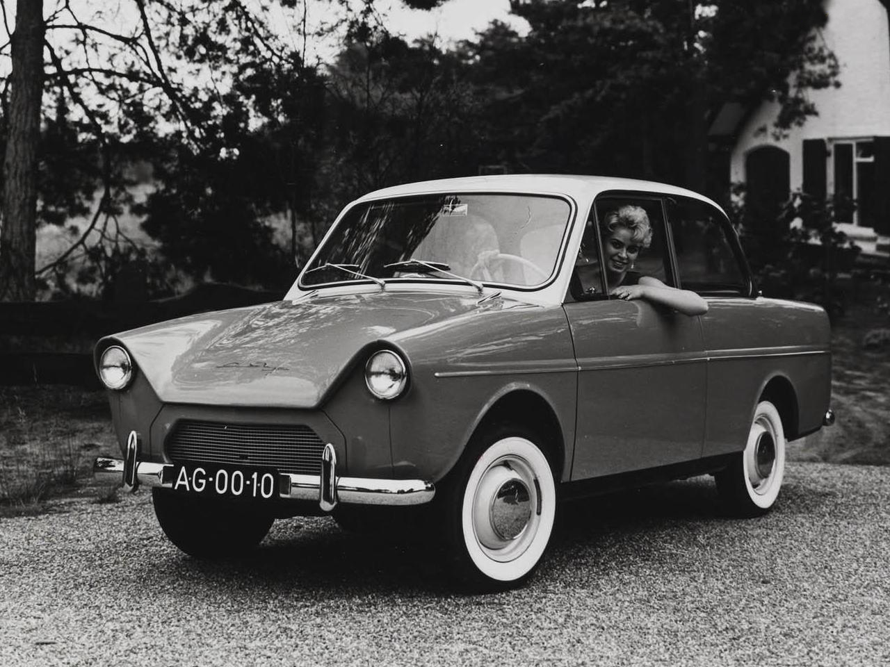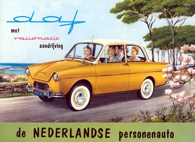 Nel 1949, dopo il secondo conflitto mondiale, la DAF realizzò un nuovo impianto ad Eindhoven per la produzione di mezzi pesanti e, successivamente, negli anni ’50 i fratelli van Doorne pensarono di entrare anche nel mondo dell’auto, con una vettura economica e facile da guidare. Nel 1958, all’esposizione automobilistica di Amsterdam, venne presentato il modello 600, caratterizzato da dimensioni contenute, era lunga 3,61 metri e, aveva una linea piacevole ed un’abitacolo ampio.