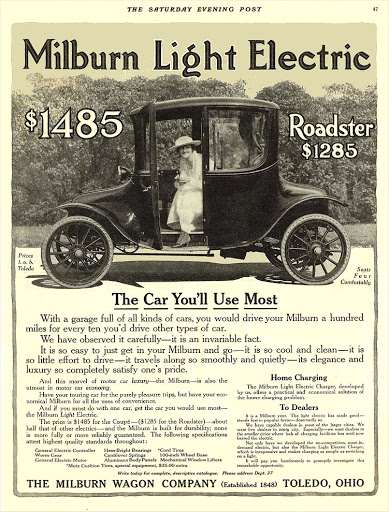 George Milburn fondò la sua azienda intorno al 1850 e, all’inizio della sua attività, si dedicò alla produzione di carrozze e carri da trasporto con il nome di Milburn Wagon Company. Prima del 1910, l’azienda produsse scocche per la Ohio Electric e per altre case automobilistiche, mentre dal 1915, iniziò la produzione della piccola Light Electric, proposta in versione Coupè e Roadster.