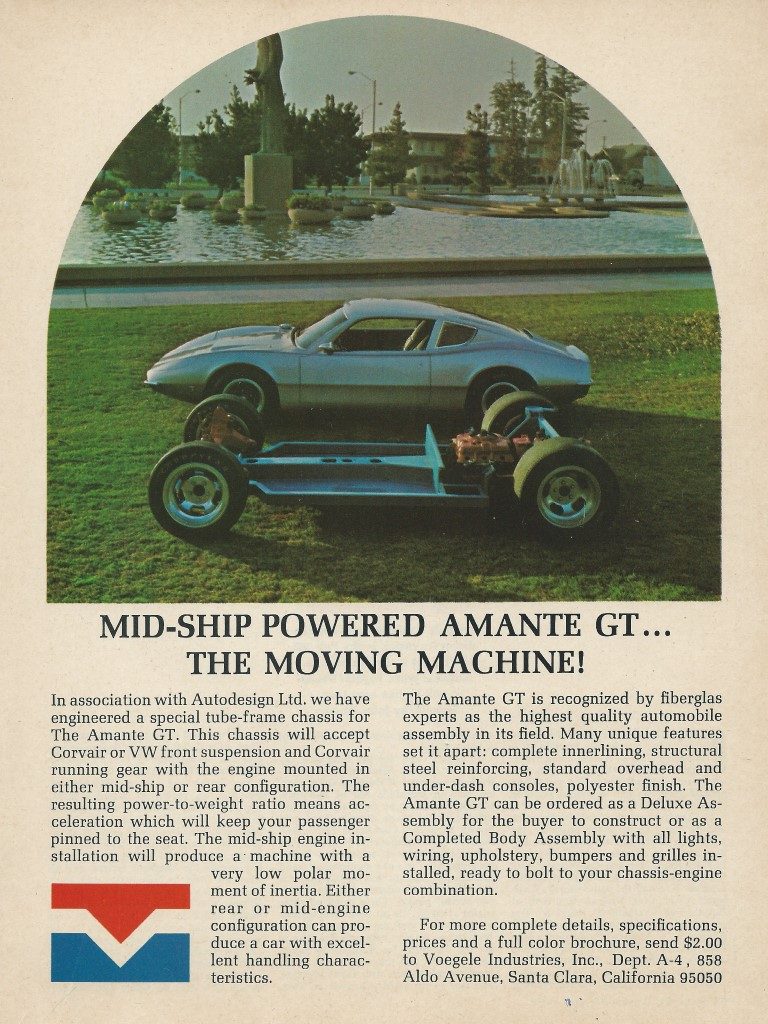 Furono apportate modifiche a livello strutturale, aggiungendo rollbar e rinforzando i punti critici. Fu rivista anche la carrozzeria, con un nuovo stampo che prevedeva doppi fari e la possibilità di scegliere tra tre diverse opzioni per i due finestrini posteriori. Il corpo vettura, infine, venne realizzato con un nuovo materiale: la resina isoftalica, ovvero il miglior materiale utilizzabile all’epoca. Il costo era più elevato rispetto alle concorrenti Fiberfab, ma la qualità della Gazelle era a quel punto la migliore del mercato. Dal 1970 Hebina Plastics cambiò nome in Voegele Industries e, prima del lancio, Bill Voegele, decise che Gazelle non era il nome più adatto per la vettura, quindi propose Amante, poiché amava quella vettura e, credeva che il nome avrebbe avuto un riscontro commerciale migliore rispetto al precedente, meno fluido nella pronuncia e anche meno attraente.