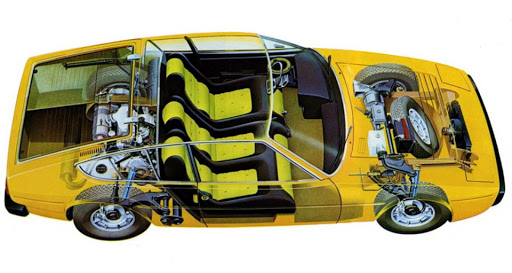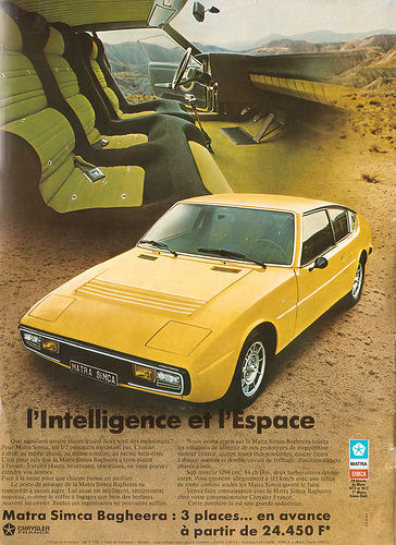 La Matra più significativa della sua storia di produttore di auto stava nascendo e, voleva innovare ancora una volta, il panorama delle sportive francesi. La nuova coupé non offriva 4 posti come la 530, i tecnici infatti abbandonarono questo schema reduci dalle problematiche che incontrarono con la progettazione di quest’ultima, vennero scartati anche i classici due posti che erano limitanti, si optò per una originale soluzione a tre posti su un’unica fila. Questa soluzione rendeva la Bagheera unica nel suo segmento, originale dunque, come il nome, identico a quello della pantera de Il libro della Giungla di Rudyard Kipling. Lo schema della vettura prevedeva il motore Simca 1300 (1294 CC) mutuato dalla 1100 TI con potenza aumentata da 82 CV a 84 CV, montato trasversalmente in posizione centrale posteriore, esattamente come lo schema adottato da Lamborghini per la Miura e, in seguito, da Fiat per la X1/9. Il cambio era a quattro rapporti, mentre le sospensioni con ammortizzatori idraulici telescopici erano a ruote indipendenti e quadrilateri deformabili all’anteriore con barra di torsione orizzontale e barra antirollio, invece al posteriore lo schema era sempre a ruote indipendenti, ma con bracci tirati e barra di torsione trasversale. I freni erano a disco sulle quattro ruote e, la struttura della vettura, era costituita da una scocca portante in acciaio, su cui venivano montati i pannelli in vetroresina.