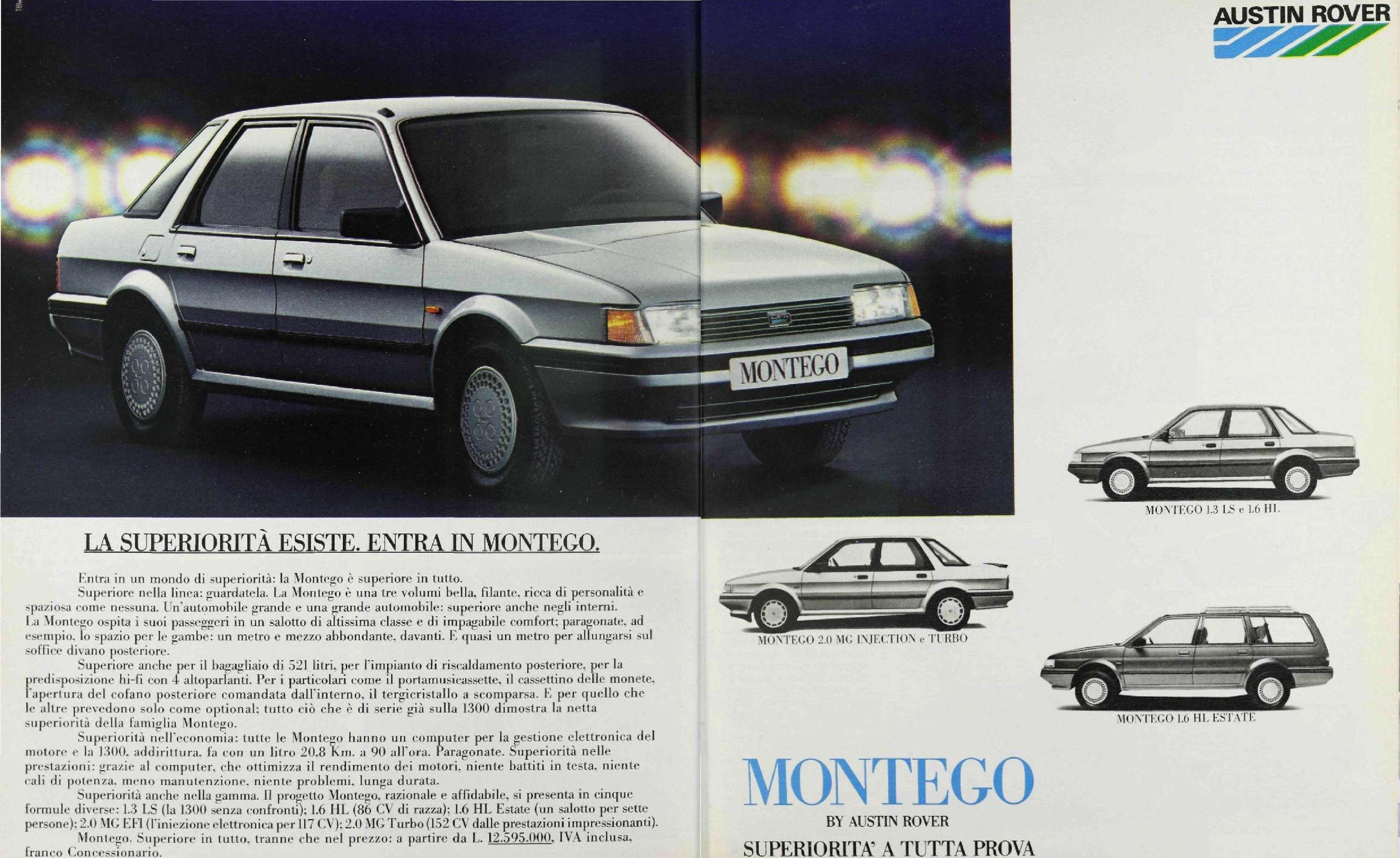 La berlina Austin, condivideva con il modello di derivazione, anche il quadro strumenti digitale con sintonizzatore vocale, disponibile per le versioni top di gamma, MG e Vanden Plas, che rappresentava una vera e propria novità per l’epoca, ma era anche causa di numerosi problemi ai quali i centri di assistenza, complice la novità e la scarsa conoscenza di questo dispositivo, non sapevano porre rimedio. Oltre a questo, come la Maestro, anche la Montego era afflitta da vari altri problemi di affidabilità che ne condizionarono l’immagine, danneggiando ulteriormente le condizioni economiche dell’Austin Rover Group, nato dalle ceneri della disastrata British Leyland. Per quanto riguarda la gamma modelli, oltre alla versione tre volumi, lo stesso anno del lancio entrò in gamma la versione Estate, ovvero station wagon, dotata di sospensioni autolivellanti e, a richiesta, di un pratico divanetto nel bagagliaio, che all’occorrenza forniva due posti per bambini nel senso opposto di marcia. Nel 1985 venne messa a listino anche la versione sportiva MG con motore turbocompresso e 150 CV di potenza, commercializzata come la vettura più potente di sempre del marchio.