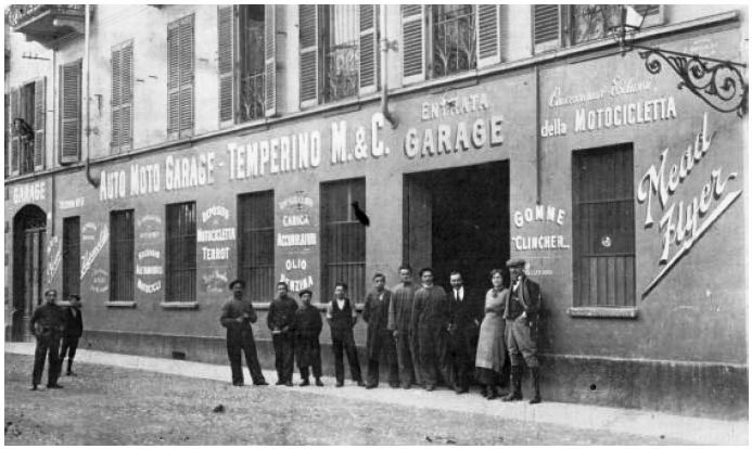 La famiglia Temperino era emigrata in America, seguendo Giovanni, padre dei fratelli protagonisti dell’articolo, nella speranza di un futuro migliore. Alla morte di quest’ultimo, la vedova rimasta sola con i figli decise di tornare in Italia, stabilendosi prima a Borgiallo in provincia di Torino e, successivamente, nel capoluogo Piemontese. Maurizio, il maggiore dei quattro, cominciò a lavorare come aiuto fabbro e successivamente in un’officina di riparazione biciclette, conciliando il lavoro con lo studio alle scuole serali. Nel 1906, assieme agli altri fratelli, Giacomo, Carlo e Mary, aprì un Garage con officina di riparazione in Corso Giovanni Oddone e, in contemporanea, attraverso la loro nuova attività incominciarono la commercializzazione di motociclette assemblate su licenza, sotto il nome di Mead Flyer.