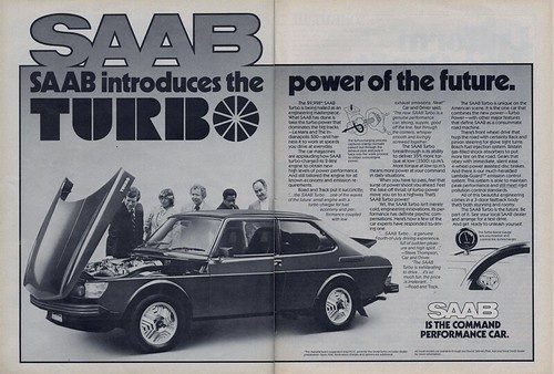 La vera rivoluzione avvenne nel 1978, quando fu lanciata la 99 Turbo, disponibile solo con carrozzeria Combi coupé a tre porte e, destinata ad entrare nella storia per essere la prima vettura di quella fascia ad utilizzare un motore turbocompresso, divenendo l’apripista di una tecnologia divenuta molto popolare negli anni 80, e che tutt’ oggi viene comunemente usata. Questa versione si distingueva dalle 99 normali per una linea più sportiva, con cerchi in lega dedicati, che richiamavano nel design le turbine, e da spoiler neri anteriori e posteriori specifici. Grazie all’adozione del turbocompressore, il motore 2000 CC erogava 145 CV per una velocità massima di 200 Km/h. Prestazioni così elevate fecero della Turbo, la vettura ideale per l’utilizzo nei rally, dove la Saab è stata per lungo tempo presente, con il modello 96 e la 99 EMS, e di cui la Turbo sarà l’ultimo modello ad essere usato per questa competizione.